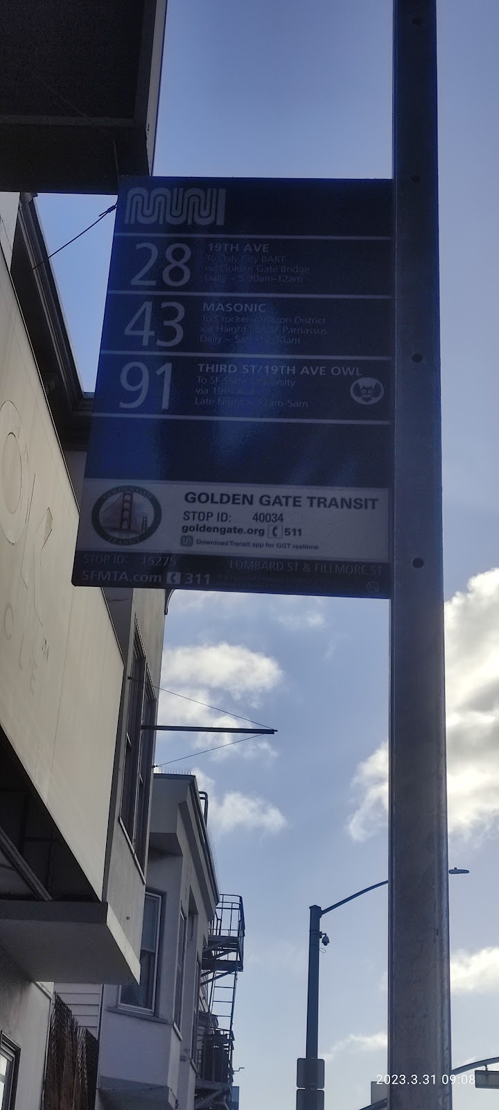 Casi en la misma puerta del hotel está la parada del autobús 28 a Golden Gate Bridge Welcome Centre.
